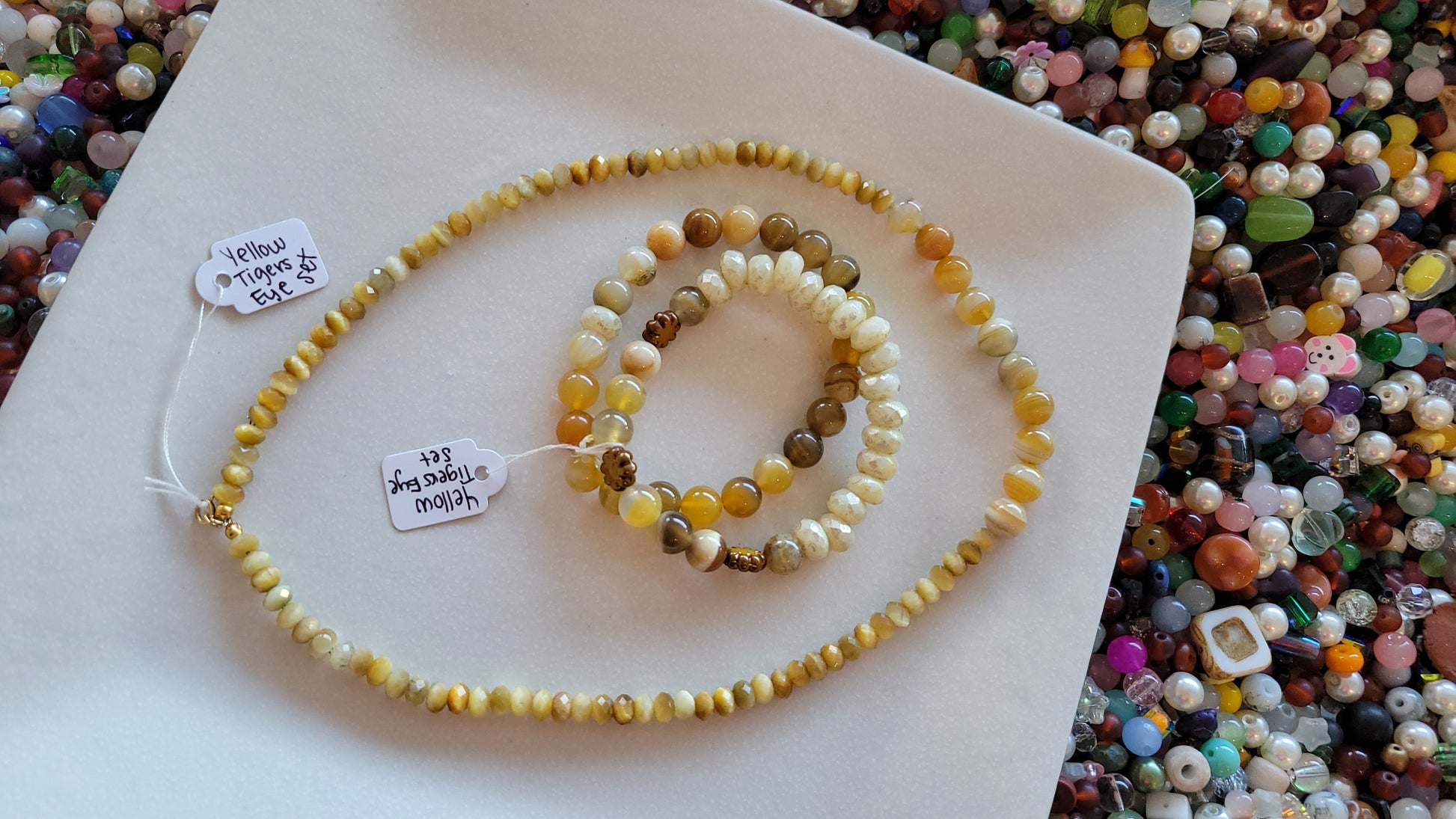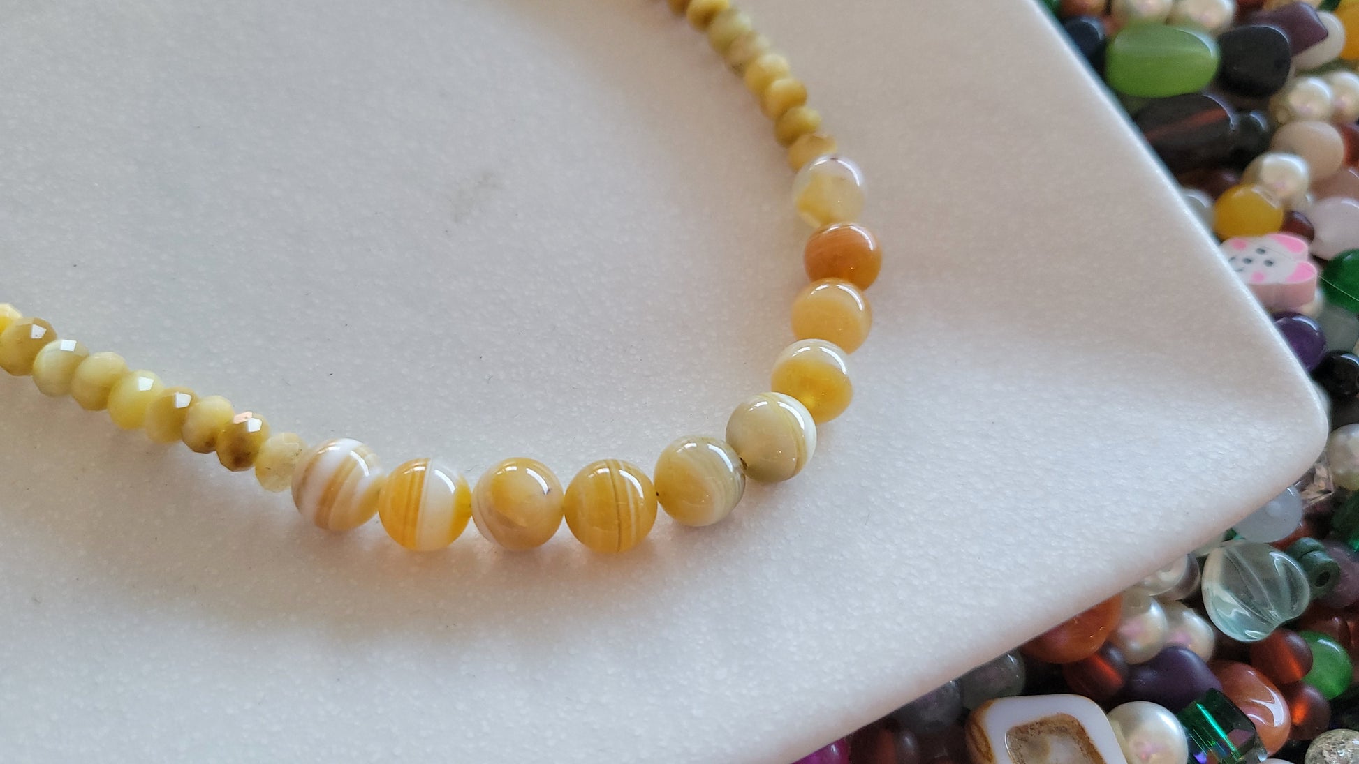 Materials: yellow Tiger's Eye, agate, Czech glass, gold filled clasp